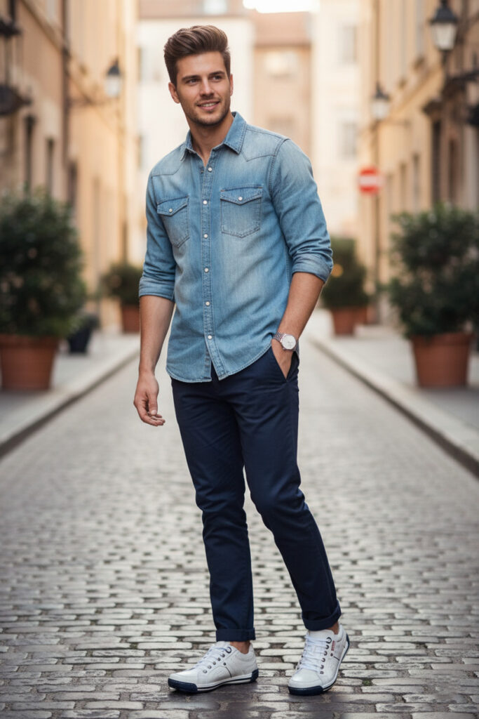 • Look para o trabalho: use com calça chino e camisa social. O sapatênis mantém o conforto do dia todo, sem perder o toque formal.